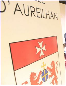 (2019) D'argent à deux lions affrontés de gueules tenant dans leurs pattes un tourteau d'azur, chargé d'une croix d'or et sommé d'une croisette fleurdelisée du même; au chef de gueules chargé d'une croix de Malte d'argent.