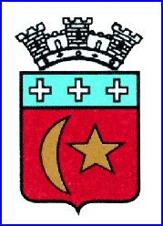 (v. 1904) De gueules au croissant contourné d'or senestré d'une étoile de même; au chef cousu d'azur chargé de trois croisettes d'argent.