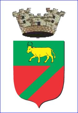 Coupé: au 1er de sinople au boeuf d'or, au 2e de gueules à la barre cousue de sinople.