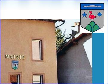 D'argent au mont de trois coupeaux de sinople sommé d'une merlette de gueules, adextrée d'une étoile d'azur et senestrée d'une coquille du même; au chef d'azur chargé d'un écharnoir [outil de tanneur] d'argent.