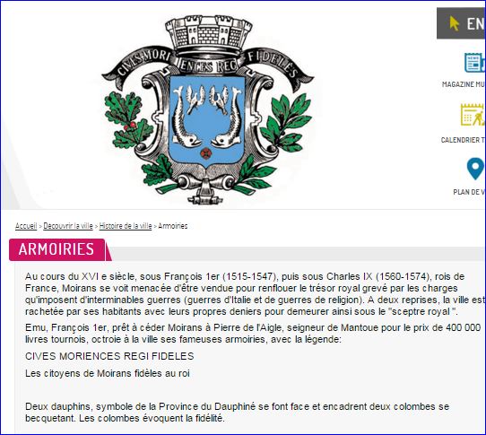 Devise: « cives moriences regi fideles » (les citoyens de Moirans fidèles au roi).