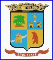 Écartelé: au 1er d'or au bouquet d'arbre de sinople sur une terrasse isolée de tenné, au 2e d'azur à saint André d'argent vêtu d'or, les bras écartés en l'air et tenant dans sa senestre un flanchis du même, accompagné en pointe de deux tours d'or ouvertes de sable, au 3e d'azur à la barre ondée d'argent, haussée à dextre et abaissée à senestre, au moulin d'or brochant en coeur, au 4e d'or à l'ours brun au naturel armé d'argent.