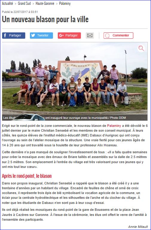 Article de presse La Dépêche du 22 juillet 2017, (site du journal).