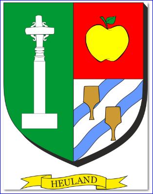 (2021) Parti: au 1er de sinople à la croix hosannière du lieu d'argent, au 2e coupé au I de gueules à la pomme d'or tigée et feuillée d'une pièce de sinople, au II d'argent à deux cotices en barre ondées d'azur et à deux battoirs de lavandière au naturel rangés en bande et brochant sur le tout.