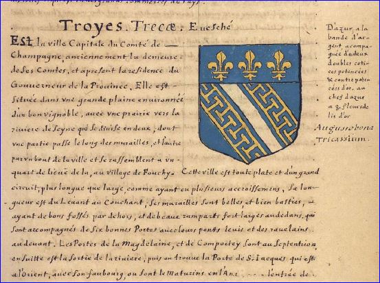 Armorial de Pierre de La Planche, 1669. La description des provinces et villes de France, extrait. Bibliothèque du Musée Condé de Chantilly.