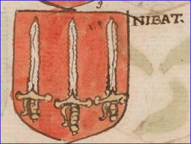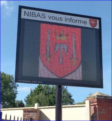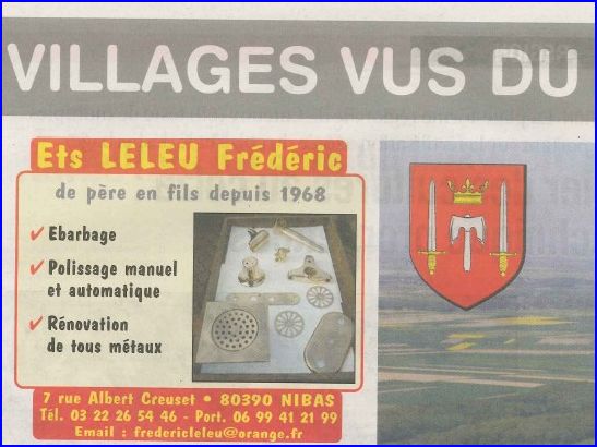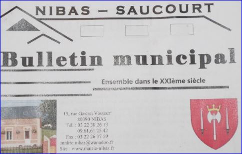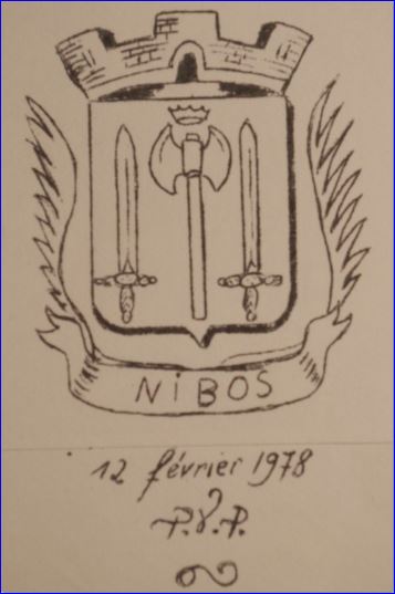 Illustration du programme d'une soirée contes en picard en 1978 à Nibas, avant l'adoption officielle du blason. La mention "Nibos" (ici simplement de circonstance) correspond à la forme de Nibas en picard (prononcer Nibo).(Aimablement transmis par Jacques Dulphy)