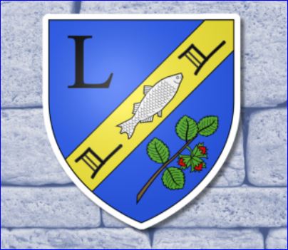 D'azur à la barre d'or chargée d'un poison d'argent accosté de deux chaises de sable, accompagnée en chef de la lettre capitale L de sable et en pointe d'une branche de noisetier au naturel, feuillé de sinople, à la coquerelle de gueules et posée en barre.