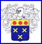 D'azur à trois flanchis d'or; au chef d'or chargé de trois tourteaux de gueules.