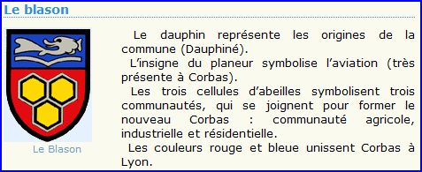 De gueules à trois celles [cellules] d'abeille de sable, bordées d'argent et remplies d'or, accolées 2 et 1; au chef cousu d'azur chargé d'un dauphin couché d'argent soutenu par un chevron en filet, renversé, ployé et alésé d'argent [insigne du planeur].