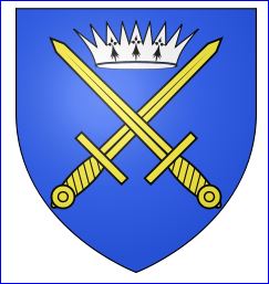 D'azur à deux épées hautes d'or passées en sautoir et surmontées d'une couronne antique d'argent chargée de trois mouchetures d'hermine de sable.