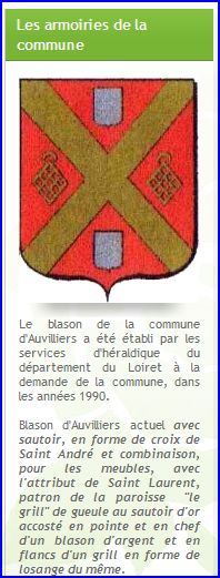De gueules au sautoir d'or cantonné de deux écussons d'argent en chef et en pointe et de deux grils d'or aux flancs, le manche vers le chef.