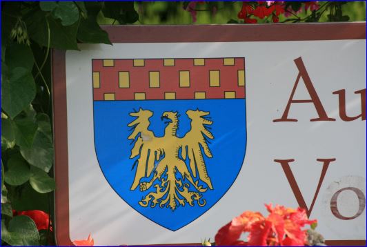 (1996) D'azur à l'aigle d'or; au chef de gueules semé de billettes d'or.