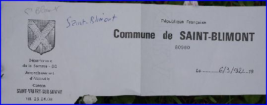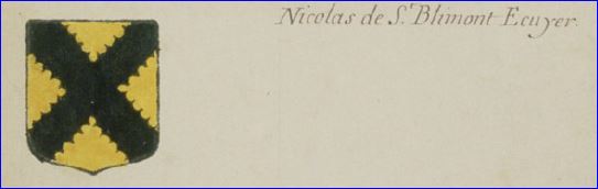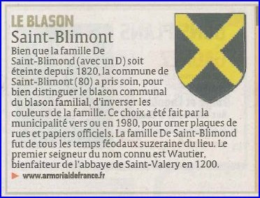 Ce choix a été fait par la municipalité de Saint-Blimont vers ou en 1980, pour orner ses plaques de rues et ses papiers officiels. Il est vrai qu'il eut été difficile à la commune de Saint-Blimont d'ignorer pour composer son blason les armes cette famille, dont le nom ne diffère que d'une lettre terminale, et qui fut de tous temps féodaux seigneur du lieu.