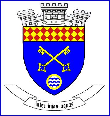 (2009) D'azur à deux clés d'or passées en sautoir, accompagnées en pointe d'une fontaine héraldique d'argent à trois fasces ondées d'azur et bordée d'or; au chef losangé d'or et de gueules de deux tires.