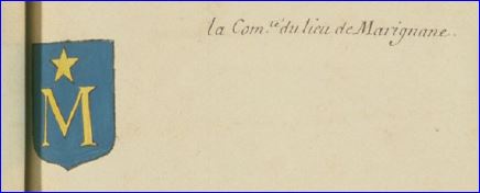 D'azur à la lettre capitale M d'or, surmontée d'une étoile du même.