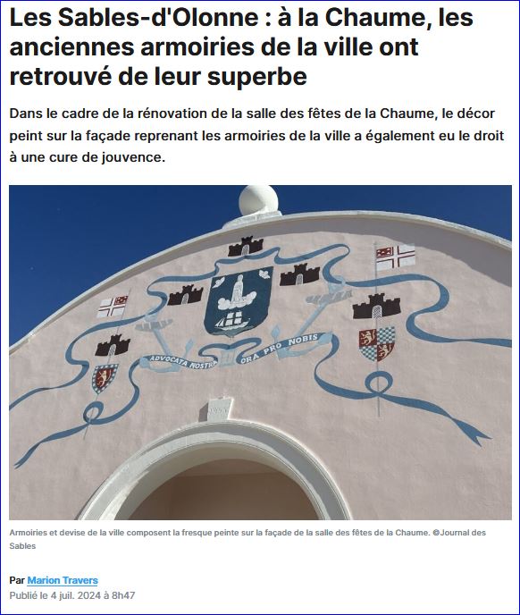 Article de presse Les Sables Vendée Journal du 4 juillet 2024 (site du journal).