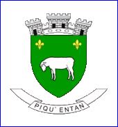 (2009) De sinople à la brebis paissant d'argent accompagnée en chef de deux fleurs de lis d'or.