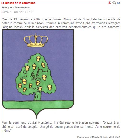 (2002) D'azur au chêne terrassé de sinople, chargé de douze glands d'or et surmonté d'une couronne fermée du même.