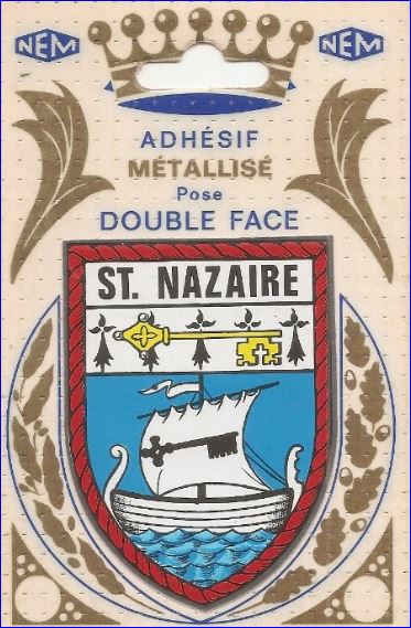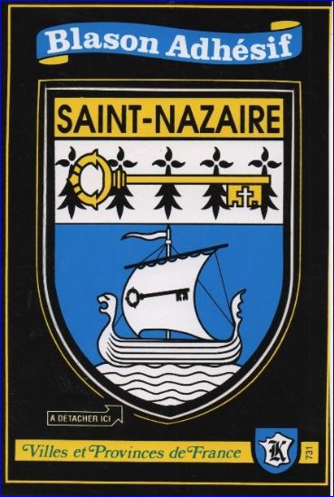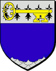 (1952) D'azur à la nef équipée et habillée d'argent voguant sur une mer du même mouvant de la pointe, la voile chargée d'une clef de sable posée en fasce; au chef d'argent chargé de cinq mouchetures d'hermine de sable et d'une clef d'or brochant en fasce sur les mouchetures, le panneton à senestre vers la pointe.