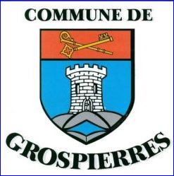 D'azur au mont de trois coupeaux d'argent sommé d'une tour du même, maçonnée de sable; entée en pointe d'azur chargé de deux coupeaux d'argent; au chef cousu de gueules chargé d'une clé d'or posée en barre, le panneton en haut et à senestre passée en sautoir avec une crosse contournée posée en bande.