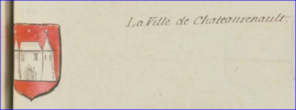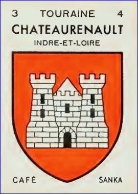 (1866) De gueules au château de trois tours d'argent en perspective, la tour du milieu en avant, les deux tours des flancs en arrière, le tout maçonné de sable.