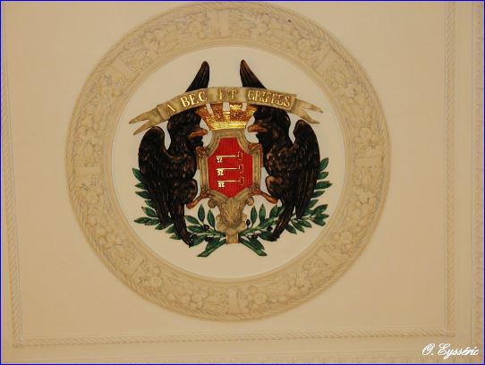 Devise: « Unguibus et rostro » (A bec et à griffes).