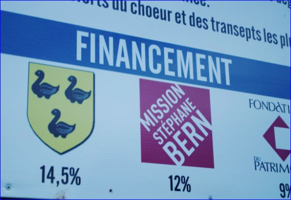 Panneau d'information pour la restauration du choeur de l'église.
