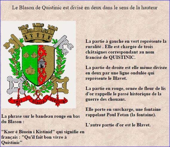 Devise: « kaer é biuein i Kistinid » (qu'il fait bon vivre à Quistinic).