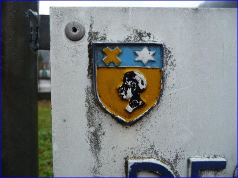 D'or à la tête de Maure de sable; au chef d'azur chargé à dextre d'un flanchis d'or et à senestre d'une étoile à six rais d'argent.