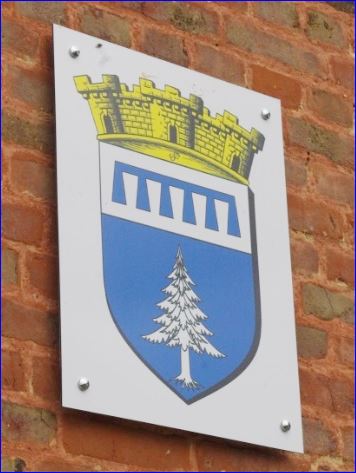 (2011) D'azur au sapin arraché d'argent, au chef du même chargé d'un lambel à six pendants d'azur.
