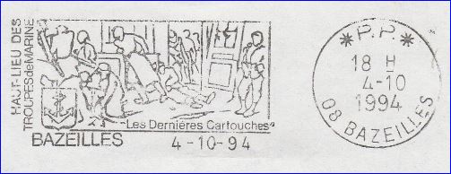 (1900) Coupé: au 1er parti au I d'or à trois pointes flamboyantes de gueules mouvant de la pointe, au II de gueules à l'ancre cordée d'or, au 2e d'argent à l'insigne de la Légion d'honneur au naturel.