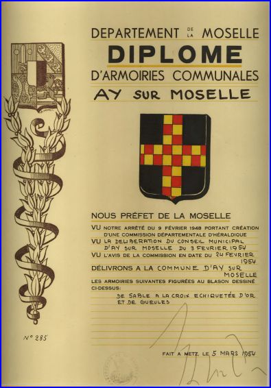 (1954) De sable à la croix échiquetée d'or et de gueules.