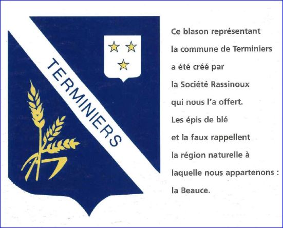 D'azur à la bande d'argent chargée de l'inscription « TERMINIERS » de sable, accompagnée en chef d'un écusson d'argent chargé de trois étoiles d'or et en pointe de trois épis de blé empoignés en barre brochant sur une faux contournée, le fer posé en barre, le tout d'or.