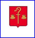 De gueules à la crosse croisée de Roncevaux d'or accostée de deux coquilles du même.