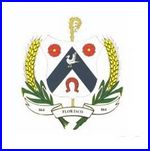 D'argent, au chevron d'azur, chargé d'un oiseau d'argent, membré d'or, accompagné en chef de deux roses de gueules, boutonnées d'or et en chef d'un fer à cheval de gueules.