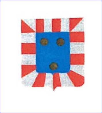 D'azur à trois besants d'or; à la bordure componée d'argent et de gueules.