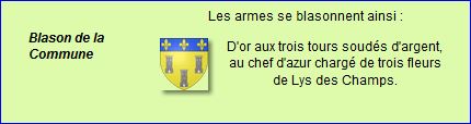 D'or à trois tours d'argent; au chef d'azur chargé de trois fleurs de lis d'or.