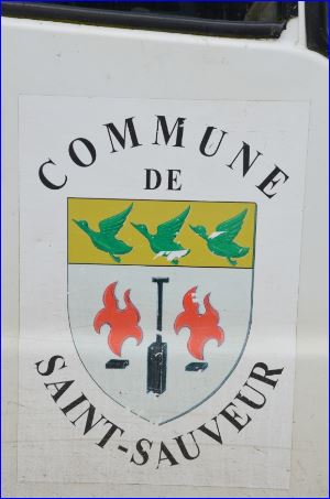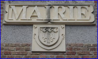 D'argent au louchet de tourbier de sable en pal, accosté de deux briquettes du même enflammées de gueules; au chef d'or chargé de trois canards de sinople en vol.