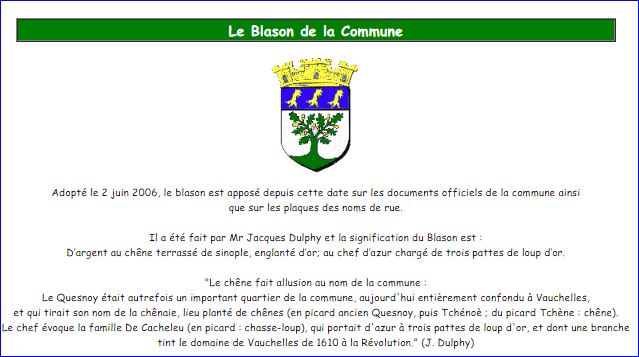 Présentes sur les plaque de rues et au fronton de la mairie depuis une quinzaine d’années, les armes de Vauchelles-lès-Quesnoy (près d’
