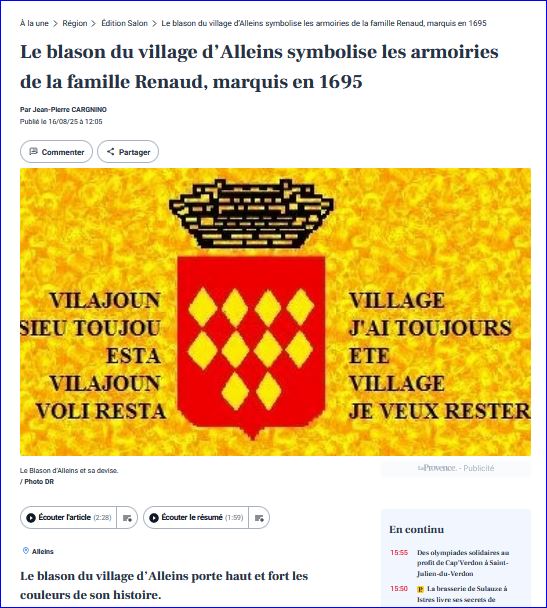 Article de presse La Provence du 16 août 2025 (site du journal).