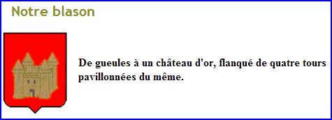De gueules au château d'or flanqué de quatre tours pavillonnées du même, ouvert, ajouré et maçonné de sable, posé en perspective.