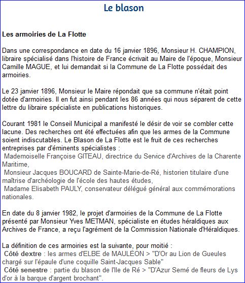 (1982) Parti: au 1er de gueules au lion d'or chargé sur l'épaule d'une coquille d'argent, au 2e mi-parti d'azur semé de fleurs de lis d'or et à la nef d'argent brochante.