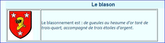 (1956) De gueules au heaume d'or taré de trois-quart, accompagné de trois étoiles d'argent.