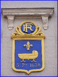 (1820) D'azur au berceau semé de fleurs de lis d'or, accompagné en chef d'une fleur de lis du même et en pointe l'inscription « 5 7bre 1638 » d'or.