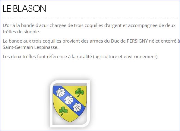 D'or à la bande d'azur chargée de trois coquilles d'argent posées dans le sens de la bande et accompagnée de deux trèfles de sinople.
