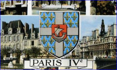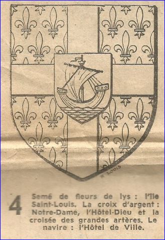 D'azur semé de fleurs de lis d'or à la croix d'argent; sur le tout, de gueules à la nef d'argent voguant sur une mer du même.