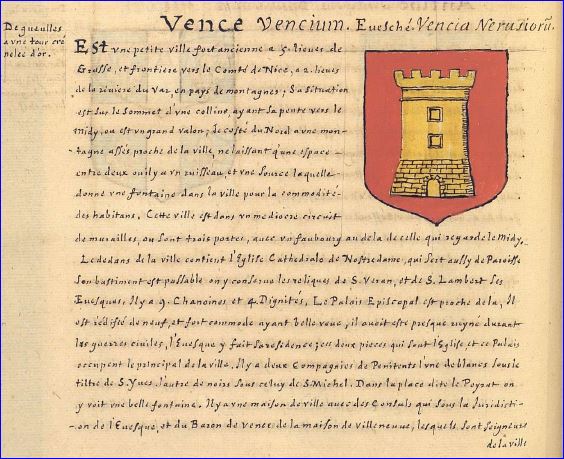 Armorial de Pierre de La Planche, 1669. La description des provinces et villes de France, extrait. Bibliothèque du Musée Condé de Chantilly.
