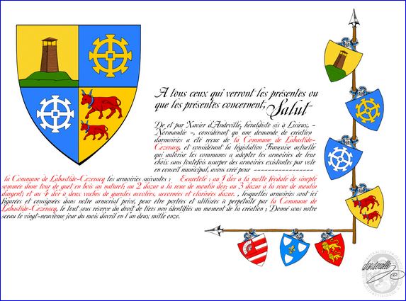 Les dessins des blasons sont exécutés par mes soins.