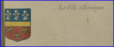 Coupé: au 1er d'azur à trois fleurs de lis d'argent rangées en fasce, au 2e de gueules à trois couronnes renversées d'or, ordonnées 2 et 1; à la fasce d'or brochant sur la partition.