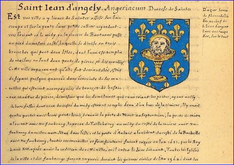 D'azur semé de fleurs de lis d'or; au franc-quartier cousu de gueules chargé d'une coupe d'or contenant la tête coupée et nimbée de saint Jean Baptiste d'argent.